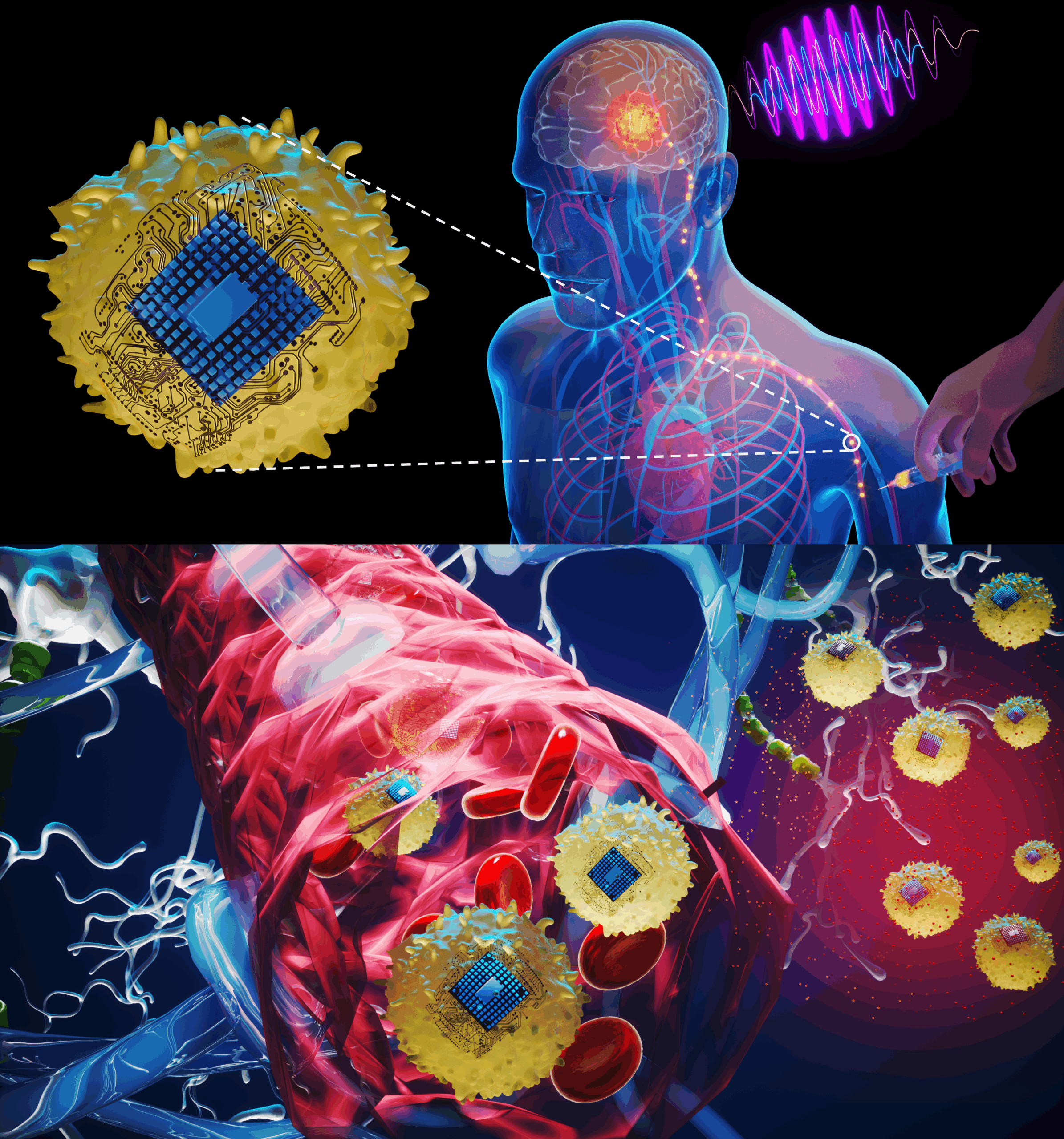 To achieve this functionality, the team created unique hybrids of these nanoelectronics with biological cells, combining the programmable versatility and complexity of Very-Large-Scale-Integration (VLSI) of compatible nanotechnology with the biological transport and targeting prowess of living cells.
